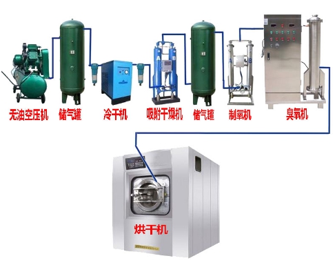 臭氧發生器產臭氧基本流程:無油空壓機(壓縮空氣) &darr;冷凝系統(冷卻無油空壓機提供的空氣溫度,降低露點) &darr;精密過濾器、全自動電磁閥(過濾冷凝系統冷卻后的空氣中...